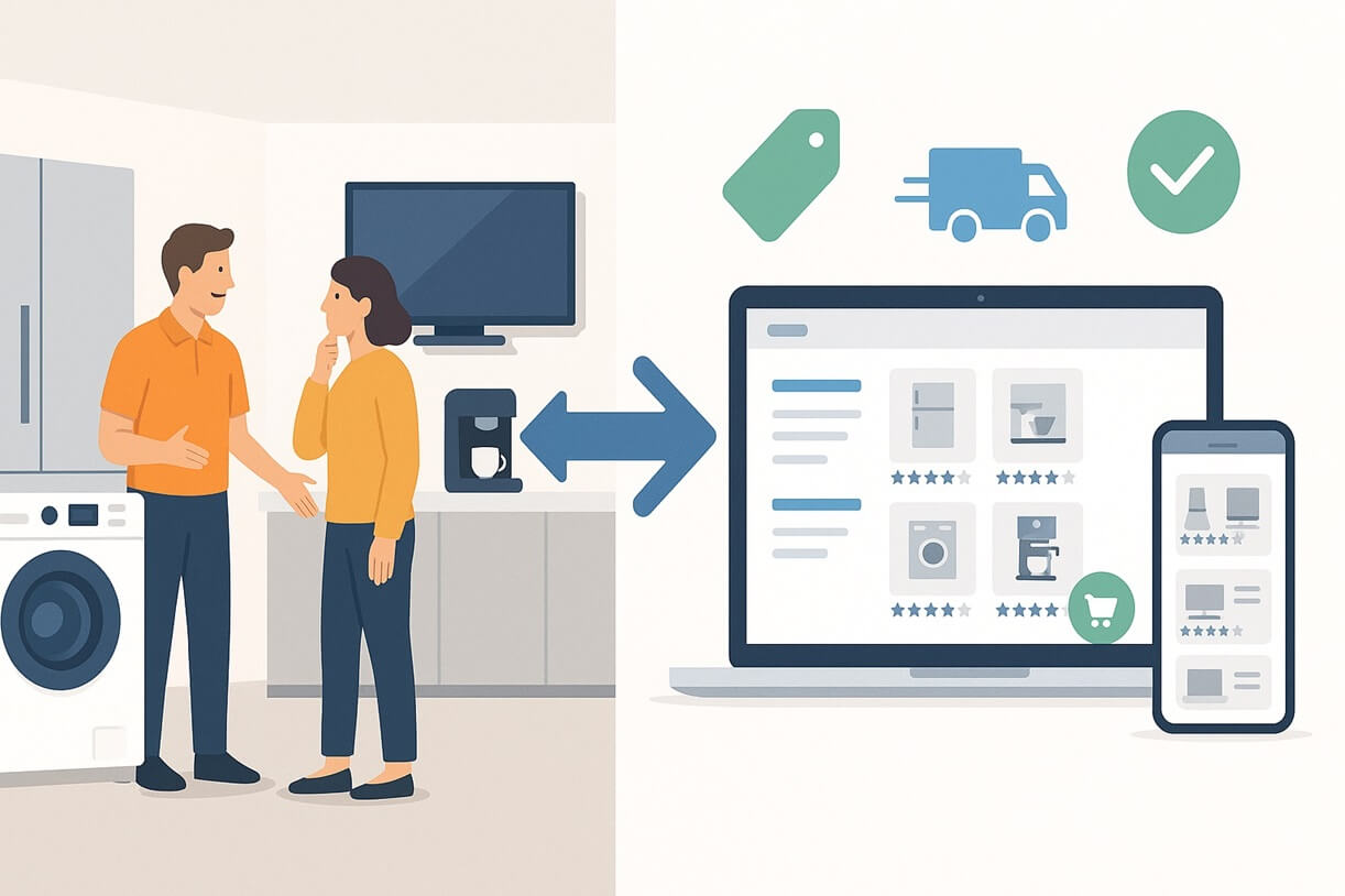 • Online wygrywa ceną, wyborem i spokojem porównywania parametrów w domu.